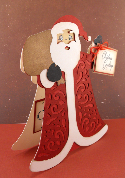 My daughter, Natasha, designed this shape card! She loves to be a part of the stamp release party and I love spending time crafting with her! We cut the Santa at 5 1/2 inches from the new Quilted Christmas cartridge. I love all of the gorgeous images on this cartridge!